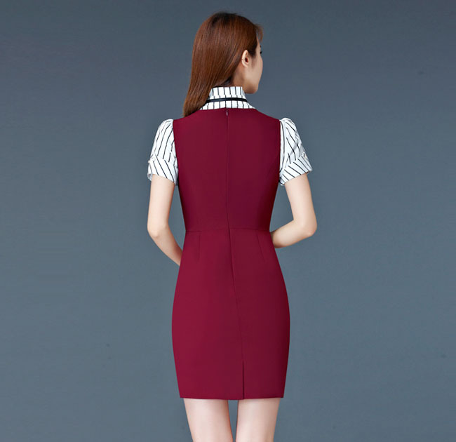 棗紅色商場(chǎng)專(zhuān)柜營(yíng)業(yè)員工作服款式模特展示圖棗紅色商場(chǎng)專(zhuān)柜營(yíng)業(yè)員工作服款式模特展示圖二